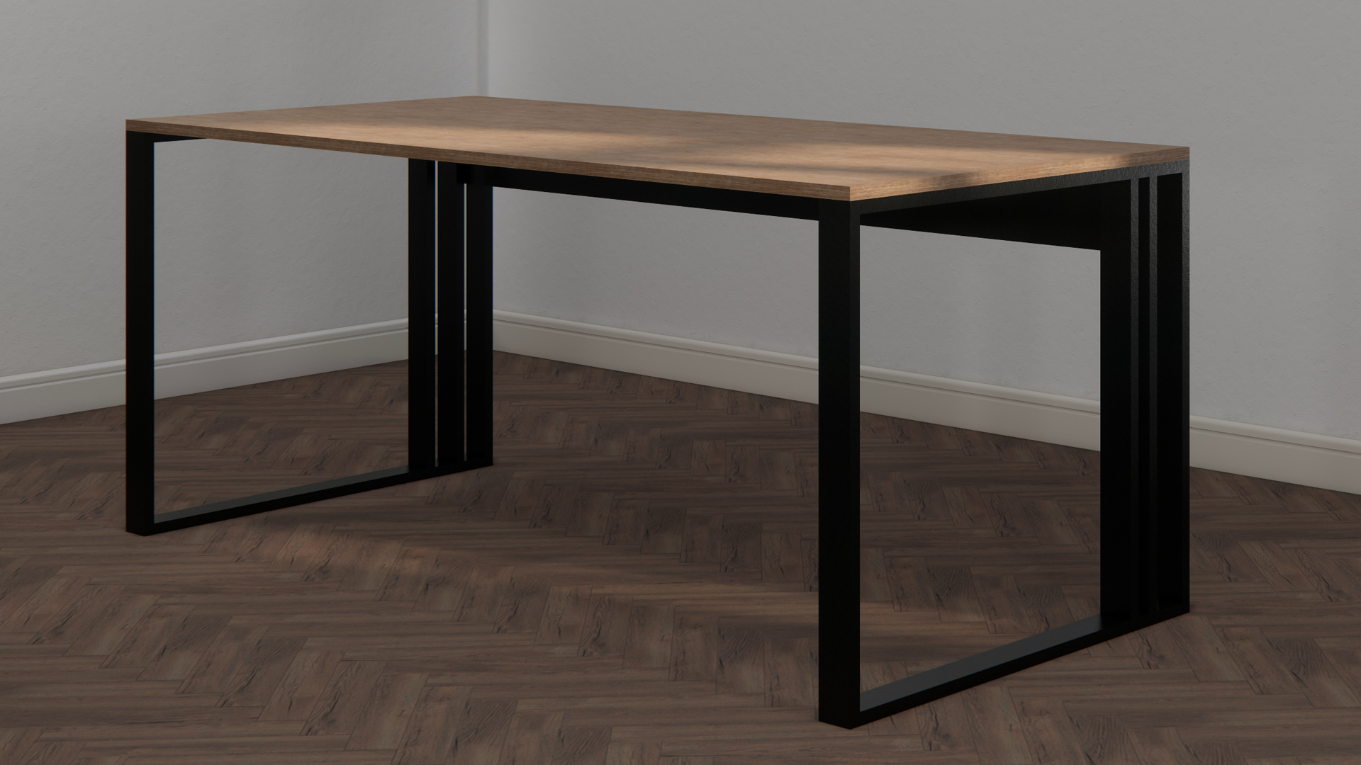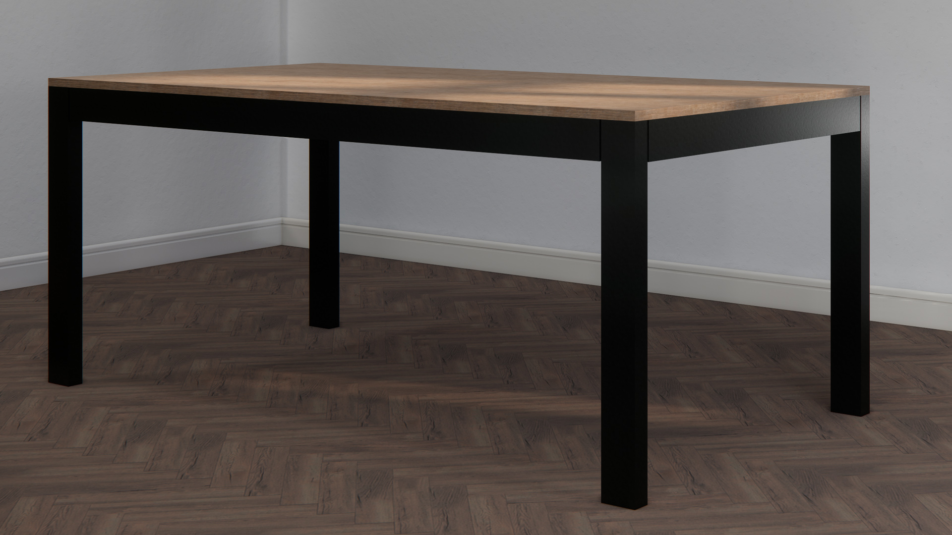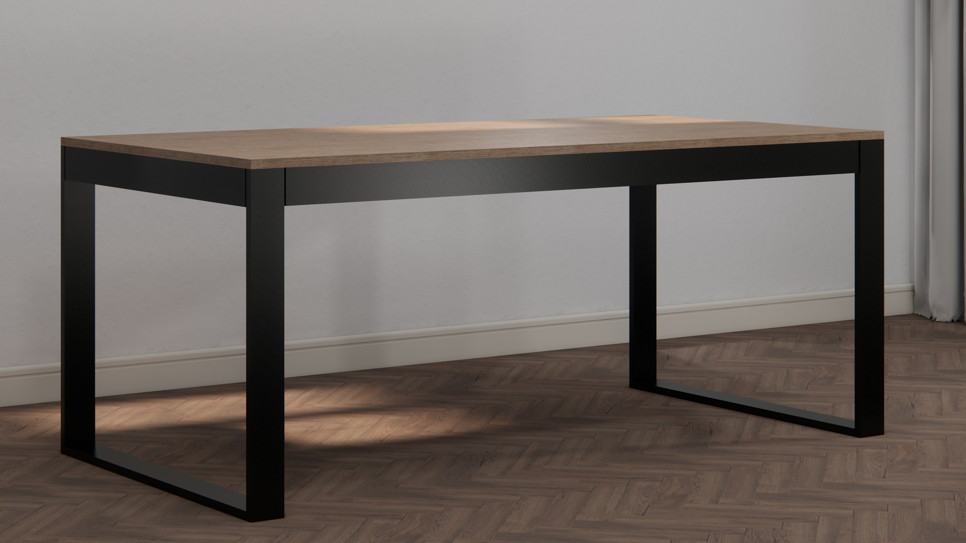 Ovaj elegantni trpezarijski sto donosi savremeni dizajn u vašu trpezariju ili kuhinju. Kombinacija crne metalne baze i ploče dezena drveta, stvara minimalistički izgled koji se lako prilagođava različitim stilovima enterijera. Čiste linije i čvrsta konstrukcija garantuju dugotrajnost i stabilnost, dok prirodni finiš stola unosi toplinu i sklad u prostor. Idealan za porodične obroke ili kao centralni element vašeg doma, ovaj sto je savršena kombinacija funkcionalnosti i estetike.