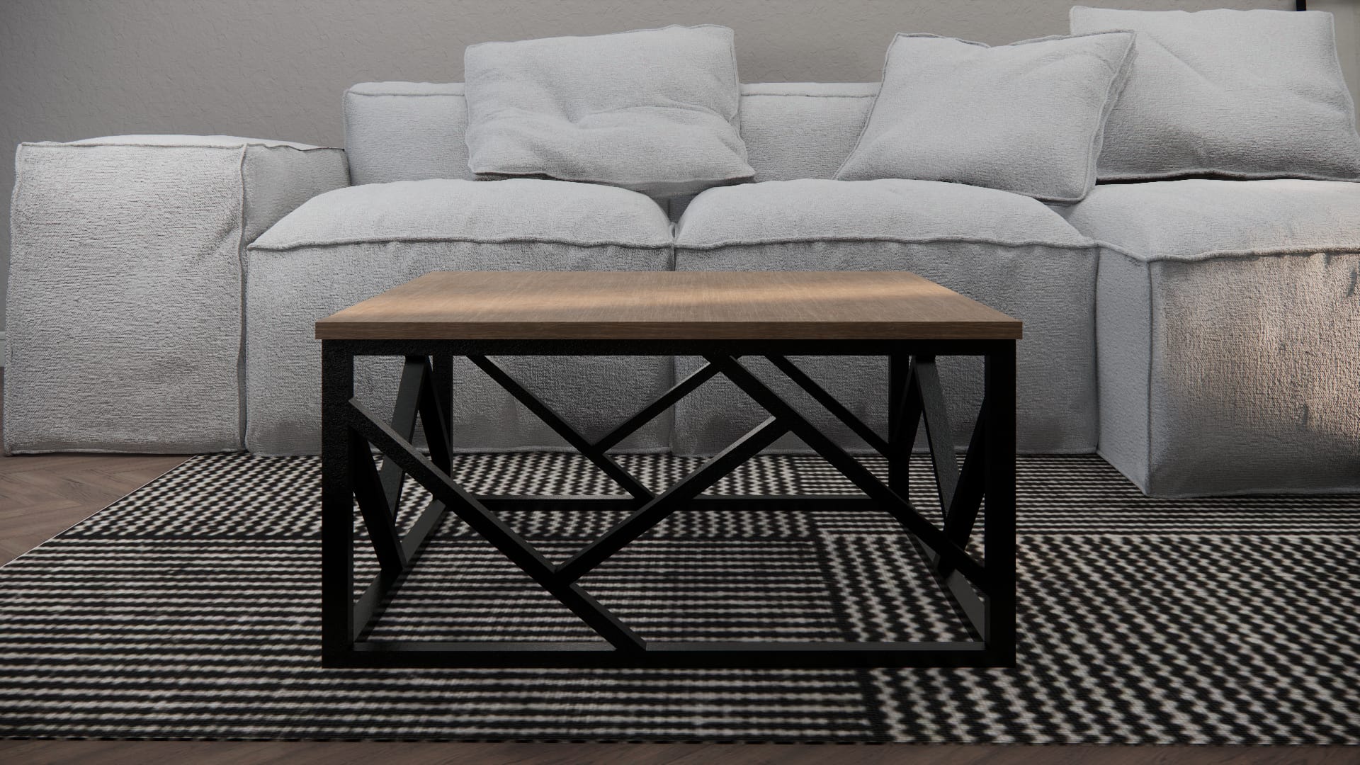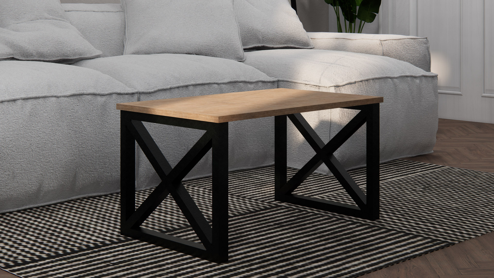 Ovaj stočić kombinuje moderan industrijski dizajn sa elegantnim detaljima dezena drveta. Njegova čvrsta metalna konstrukcija sa geometrijskim uzorkom pruža stabilnost, dok ploča unosi toplinu i prirodni izgled u svaki prostor.