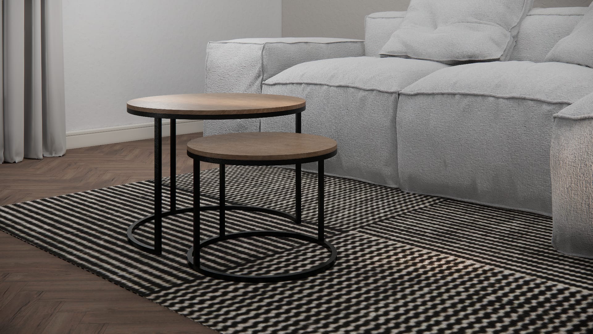 Ovaj set klub stočića, sa kružnim pločama i elegantnom metalnom konstrukcijom, savršen je spoj funkcionalnosti i modernog dizajna. Manji stočić se lako uklapa ispod većeg, pružajući praktičnost i stil u svakom prostoru